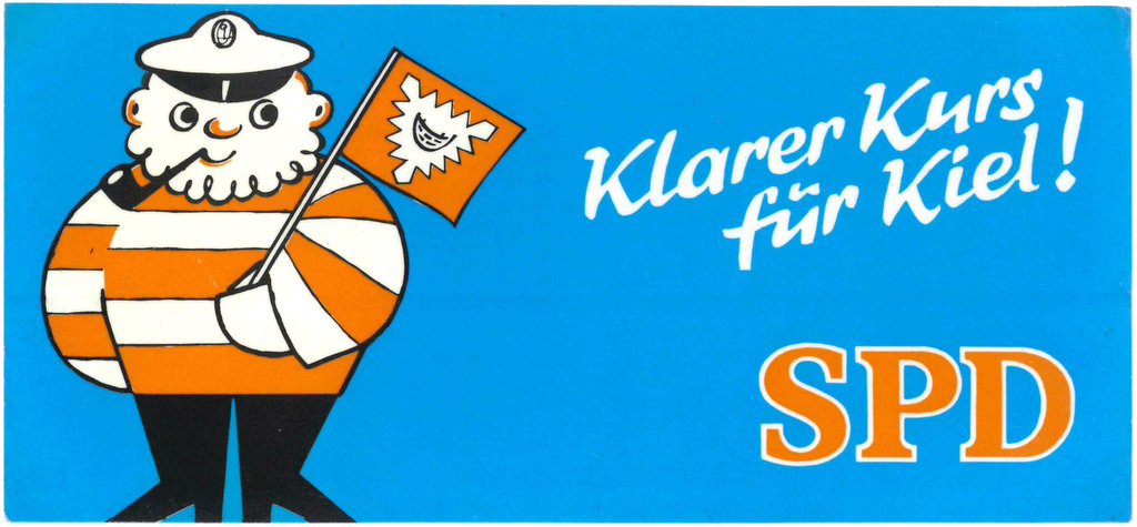 SPD-Aufkleber: "Klarer Kurs für Kiel" - Mit Seemann und Kiel-Fahne
