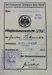 | 16:04, 18. Aug. 2024 | MItgliedsbuch Reichsbanner.jpg (Datei) | 249 KB | Mitgliedsbuch von Theodor Sakmirda II aus dem Nachlass von Theo Sakmirda | 1 | |