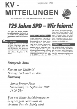 [[Datei:KV-Mitteilungen.jpg|260px|thumb|right|KV (Kreisverbandsmitteilungen) der Kieler SPD für Ortsvereine und Arbeitsgemeinschaften, erschien unregelmäßig in den 1980iger Jahren]] | |||