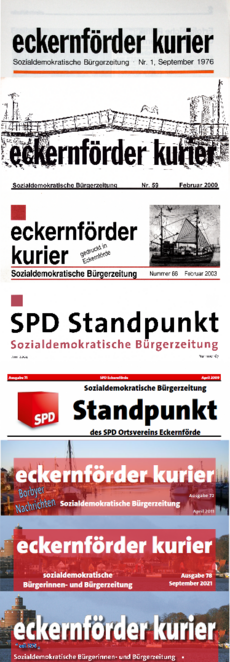 Der eckernförder Kurier hatte zahlreiche Readaktionen und wurde zwischenzeitlich für ein paar Jahre sogar zum "SPD-Standpunkt" umbenannt, eh es seit 2011 wieder heißt, hier kommt der "eckernförder kurier - Sozialdemokratischen Bürgerinnen- und Bürgerzeitung!
