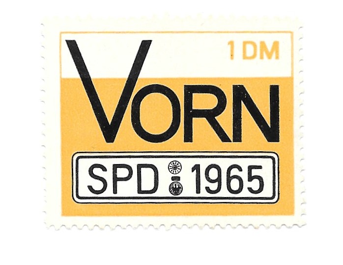 | 14:37, 14. Feb. 2024 | Sondermarke SPD Vorn 1965.jpeg (Datei) | 65 KB | Sondermarke der SPD aus dem Bundestagswahlkampf 1965: Vorn SPD 1965 Die Sondermarke stammt aus der Sammlung von Karl Altewolf Scan: Bernd Löwner | 1 | |