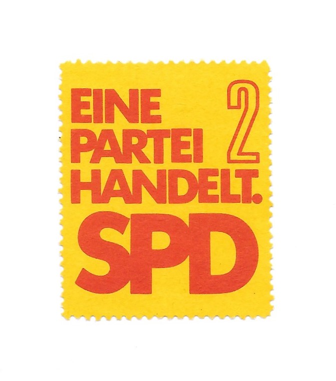 | 14:34, 14. Feb. 2024 | Sondermarke SPD BTW 1976.jpeg (Datei) | 107 KB | Sondermarke der SPD aus dem Bundestagswahlkampf 1976. Künstler malen für sozialen Fortschritt. Am Arbeitsplatz muss Platz für Menschen sein. Die Sondermarke stammt aus der Sammlung von Karl Altewolf Scan: Bernd Löwner | 1 | |