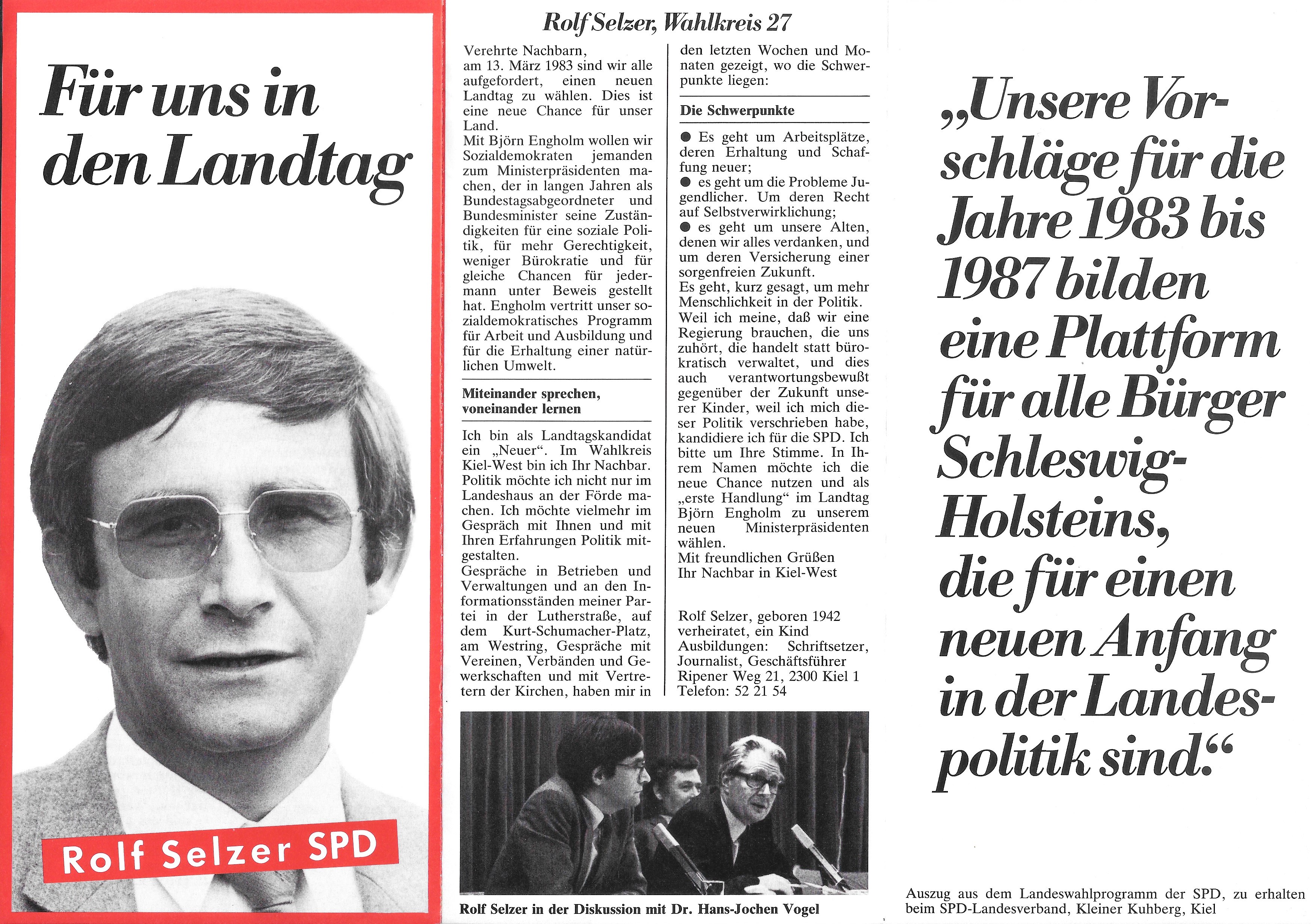 | 21:41, 30. Jan. 2024 | Rolf Selzer Flyer zur LTW 1983.jpeg (Datei) | 2,24 MB | Flyer von Rolf Selzer zur Landtagswahl 1983 | 1 | |