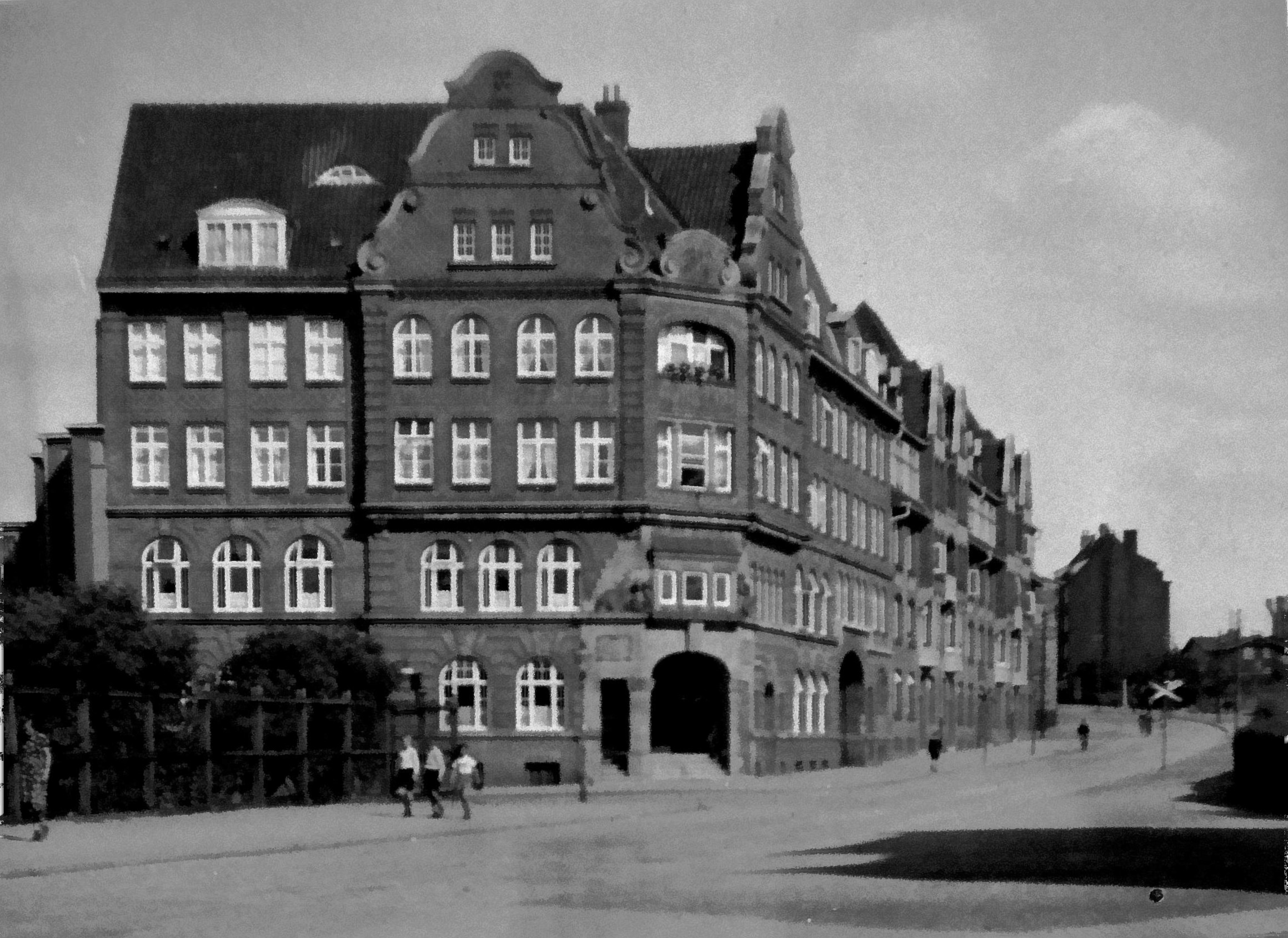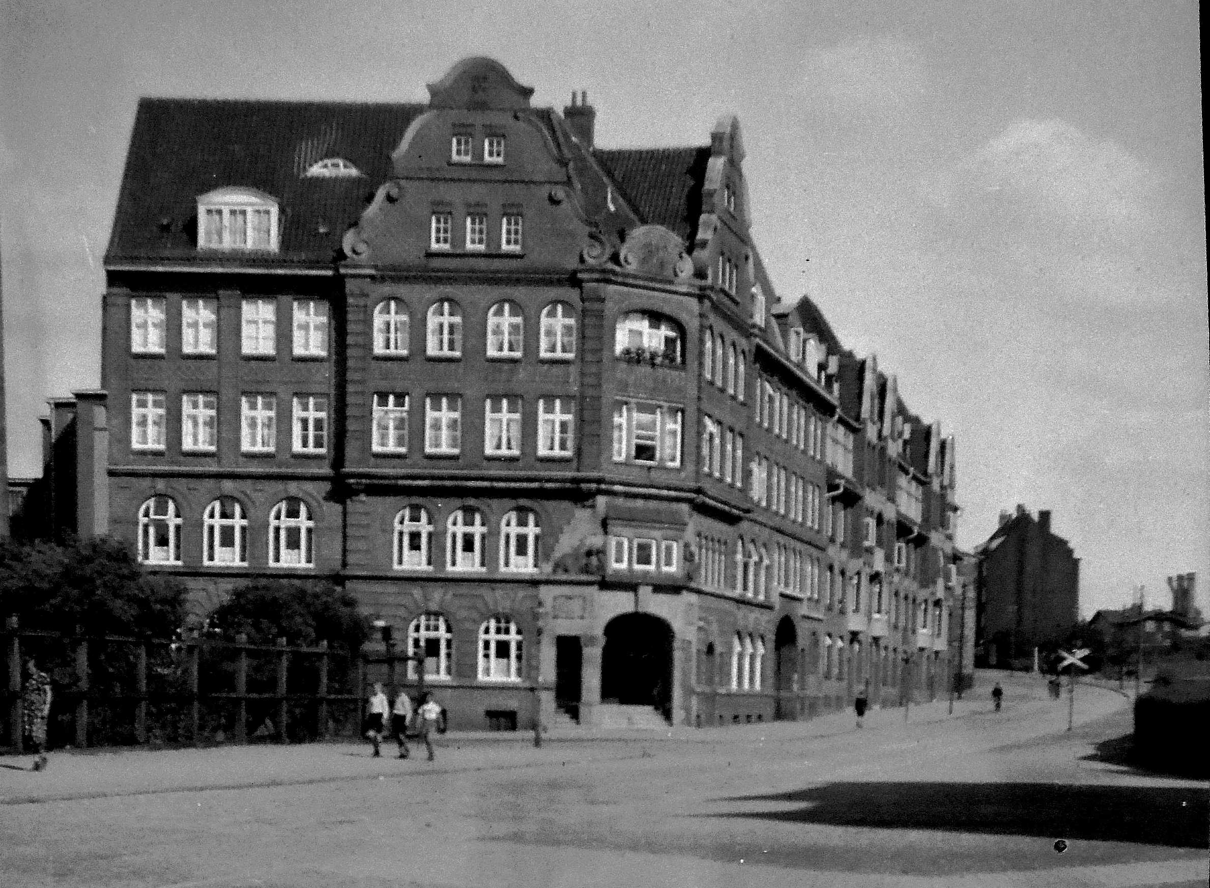 Verwaltungs- und Wohngebäude Ecke Segeberger-Straße-Sörensenstraße. Mit 1935 datiertes Negativ aus dem Nachlass vom Elsa Meitmann, geb. Adam.