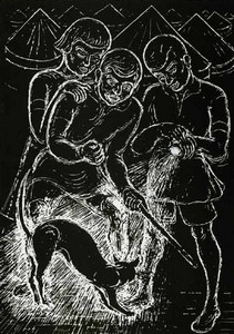 Die Nachtwache der Kinderrepublik Seekamp bekommt Arbeit. Zeichnung Richard Grune. Aus der Dokumentation zur Kinderrepublik. Repro skw.