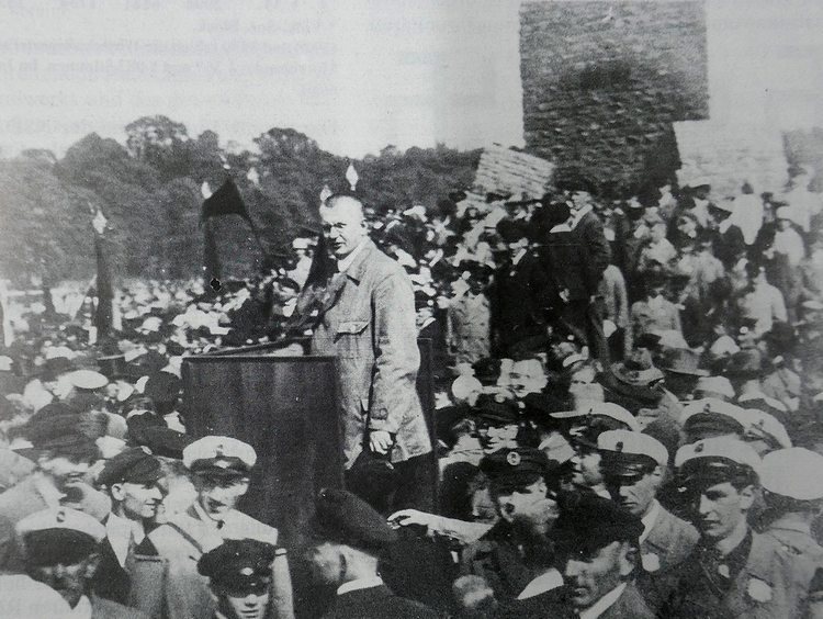Gemeindevorsteher Heinrich Jacobs während seiner Rede zur Einweihung des Friedrich-Ebert-Denkmals in Büdelsdorf am 1. Juli 1928.