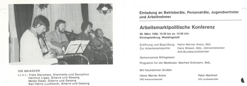 Am 26. März 1988 luden der Kreisvorsitzende Heinz-Werner Arens und der AfA-Landessekretär Peter Mertineit zu einer Arbeitsmarktpolitischen Konferenz in den Kirchspielkrug des Ortes ein. Hauptredner war Hans Wiesen. Das Unterhaltungsprogramm bestritten Die Maikäfer aus Kiel.