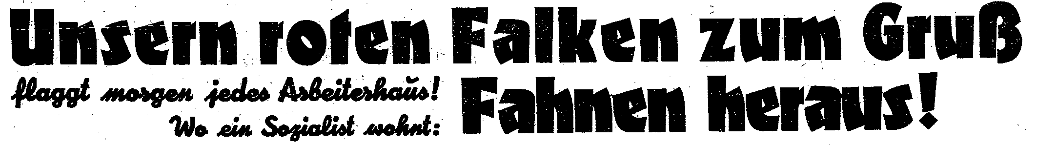 Text: "Unseren roten Falken zum Gruß flaggt morgen jedes Arbeiterhaus! Wo ein Sozialist wohnt: Fahnen heraus!